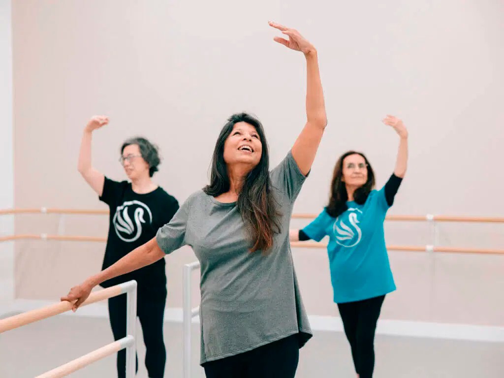 SILVER SWANS: A gentle ballet class tailored for mature movers. Focus on grace, elegance, musicality, posture, and joy. No prior dance experience needed.